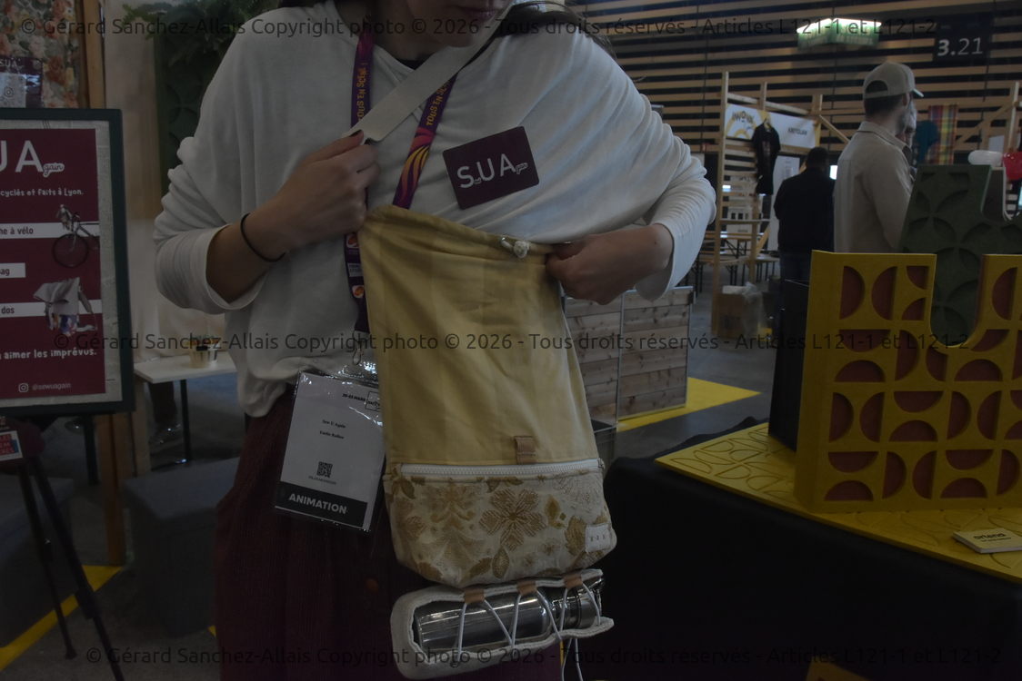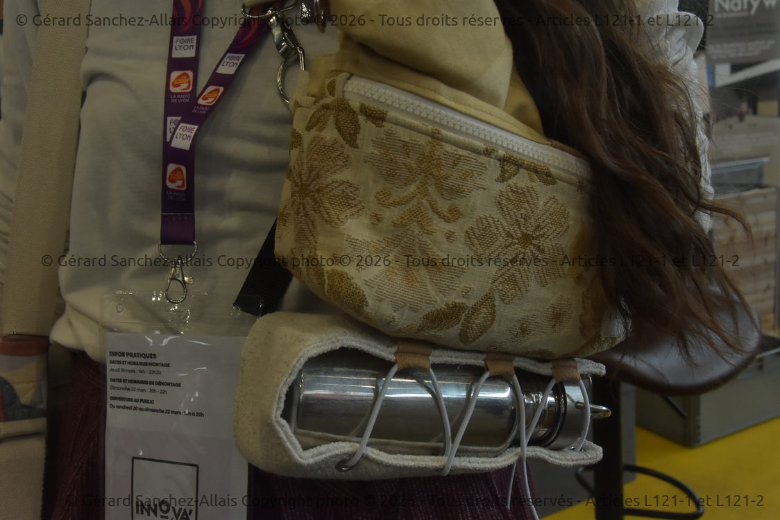 Outre le tote-bag traditionnel, elle a aussi créé un modèle de sac qui se transforme en sac à dos, et une super-banane, super jolie, multi-dimensionnelle, à laquelle on peut fixer une gourde, et qui devient un cabas pour de petits achats impromptus, un modèle entre l’origami et les Transformers, dans un esprit bien lyonnais néanmoins, celui de cette créatrice effervescente, rayonnante, enthousiaste et débordante d’énergie.