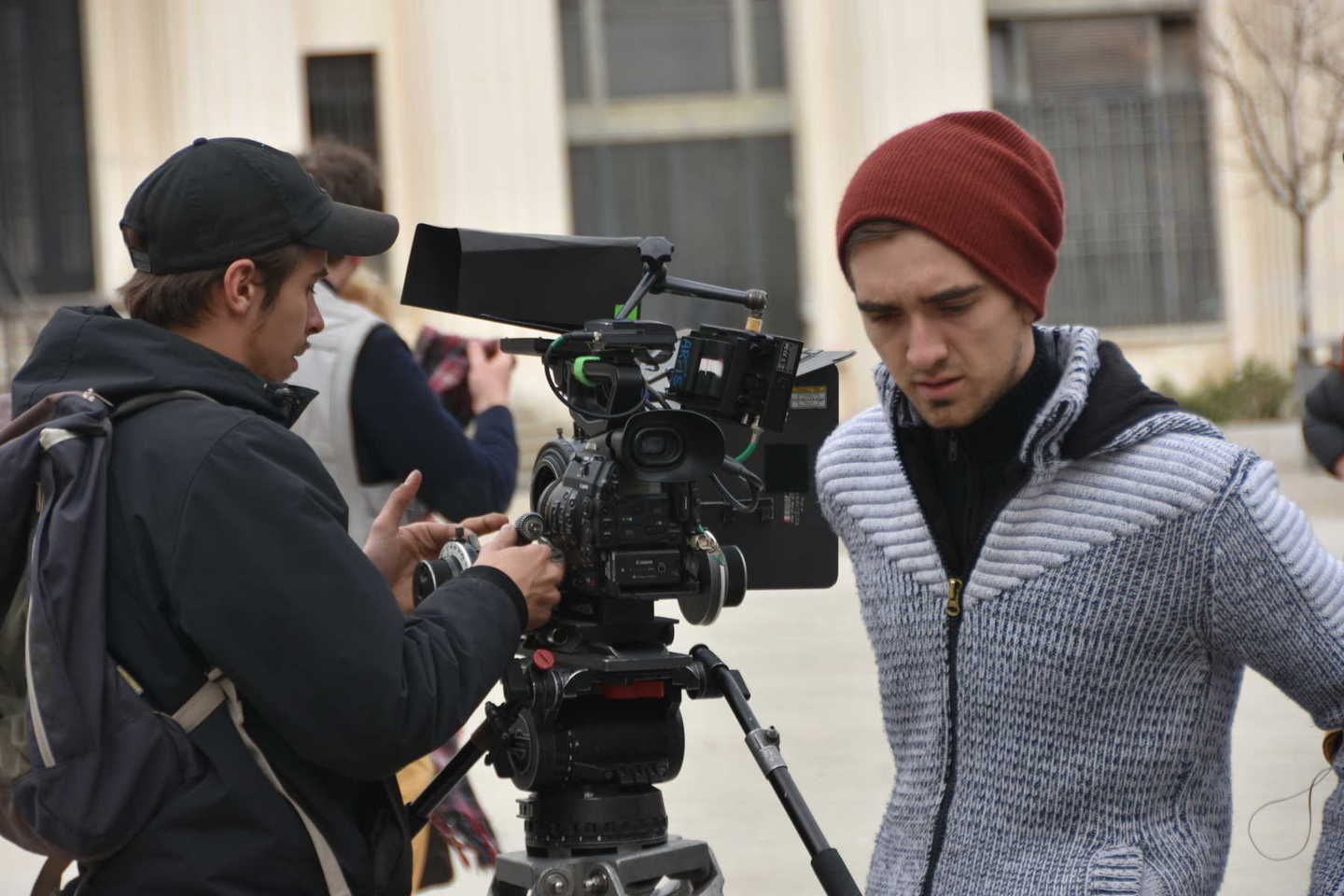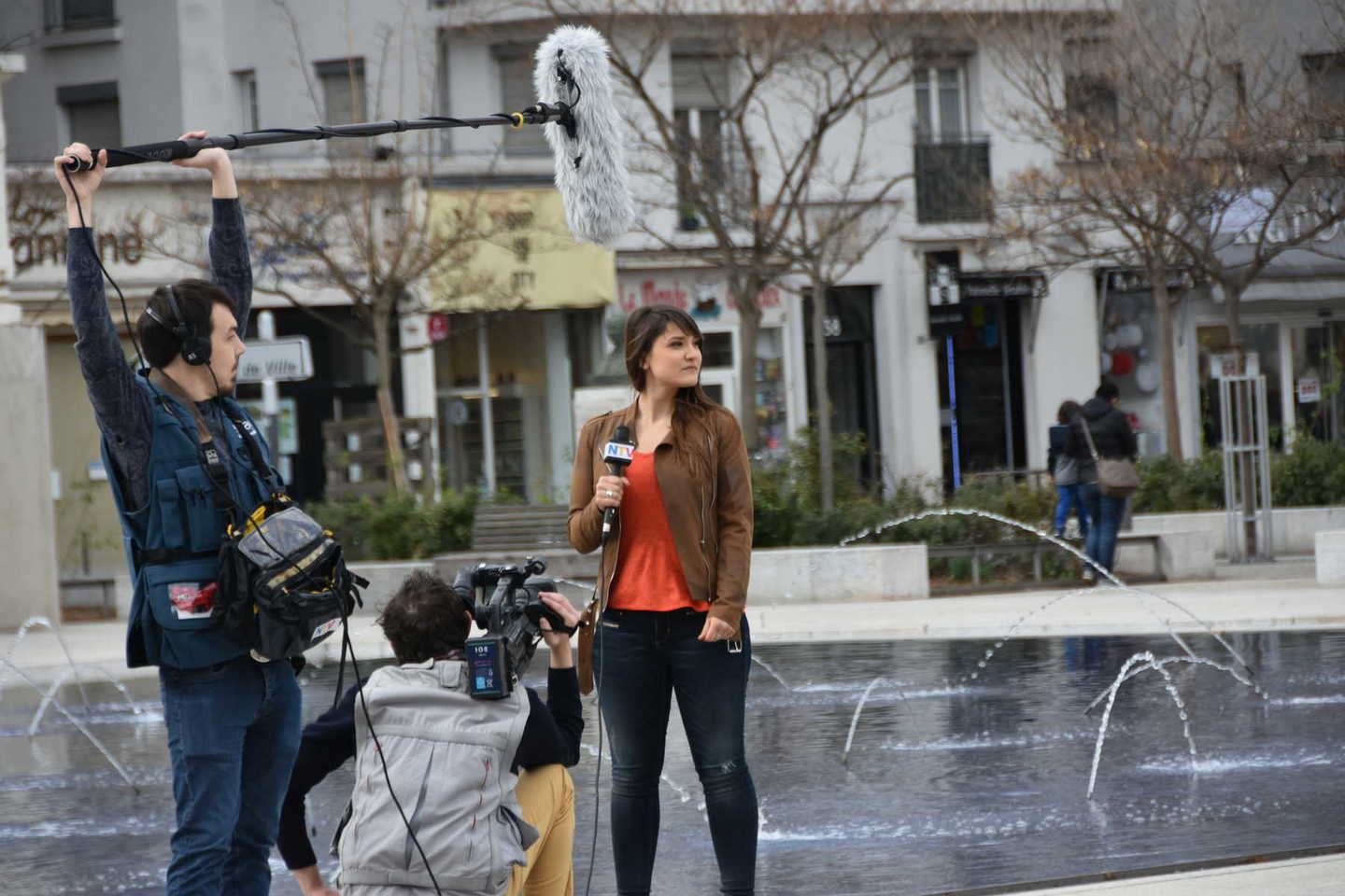 Place Lazare Goujon, entre la Mairie et le Théâtre National Populaire, Villeurbanne, ce jour-là, la luminosité est normale, il fait assez clair, mais on ne voit guère le soleil, sinon par intermittence. Un groupe est affairé. Ce sont des étudiants de l’école de cinéma de Villeurbanne, ARFIS, située au Pôle Pixel, des étudiants, et des professionnels… Un moment imprévu qui ouvre sur le ballet de ces prises de vue saisies sur le vif, à l’improviste. Oui, c’est un formidable ballet à ciel ouvert. Le court-métrage filmé a pour titre « Quoi de neuf chez nous? ». A découvrir, bientôt, sur vos écrans.
